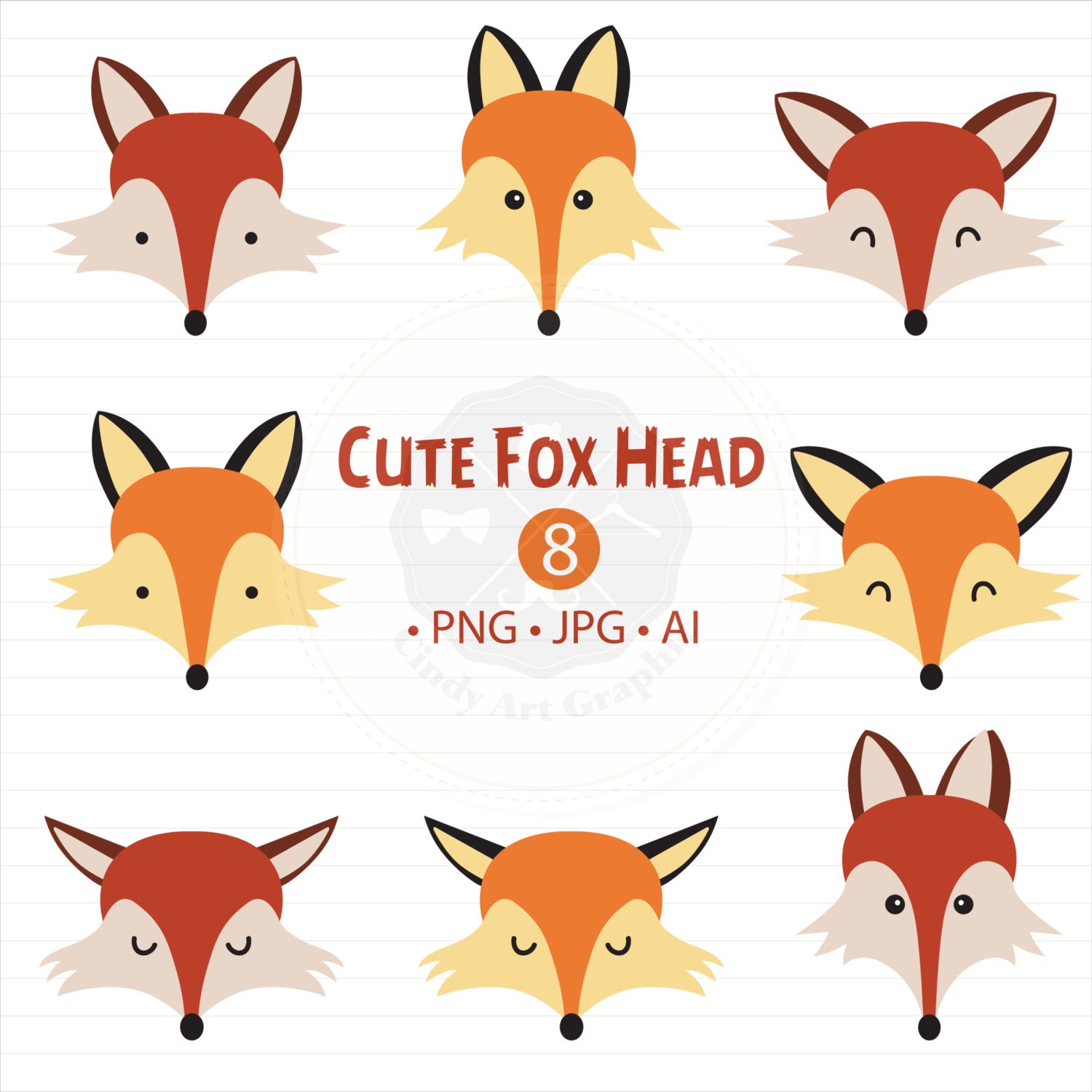 Cute fox clip art fox clipart svg fox illustration digital | etsy.